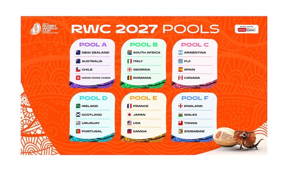 Se sorteó la fase de grupos del Mundial de Rugby Australia 2027 que por primera vez contó con la presencia confirmada de las selecciones participantes, que a partir de esta edición serán 24 equipos. Luego de la lotería, se confirmó que Los Pumas integrarán el Grupo C de la competencia y enfrentarán a Fiyi, España y Canadá.